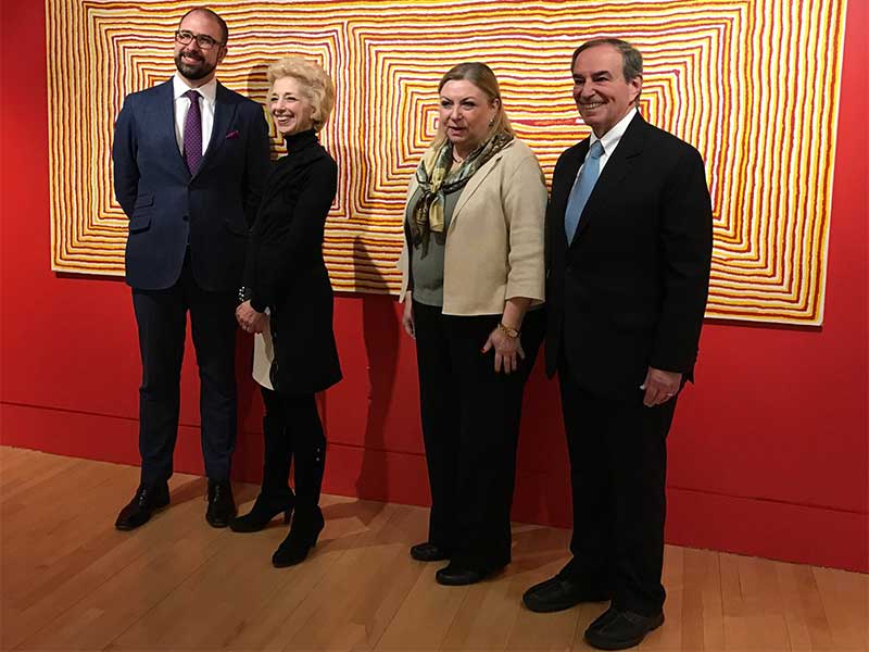The backdrop for the program was the stunning exhibition of contemporary Australian paintings by nine leading Aboriginal artists from remote northwest Australia. The Embassy was the last stop on a U.S. tour for “No Boundaries,” which features works from the collection of Debra and Dennis Scholl of Miami.